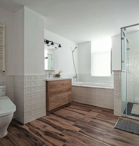 對于喜歡日式風(fēng)格的人來說,原木色的木質(zhì)浴室柜是一定要有的。原木色質(zhì)感,搭配仿木紋地板,營造身處林間和大自然的衛(wèi)浴氛圍。寬敞的大抽屜提供大量的儲(chǔ)物空間,好讓臺(tái)面保持干凈整潔,沒有瓶瓶罐罐多余的裝飾,整個(gè)空間美感直線上升!